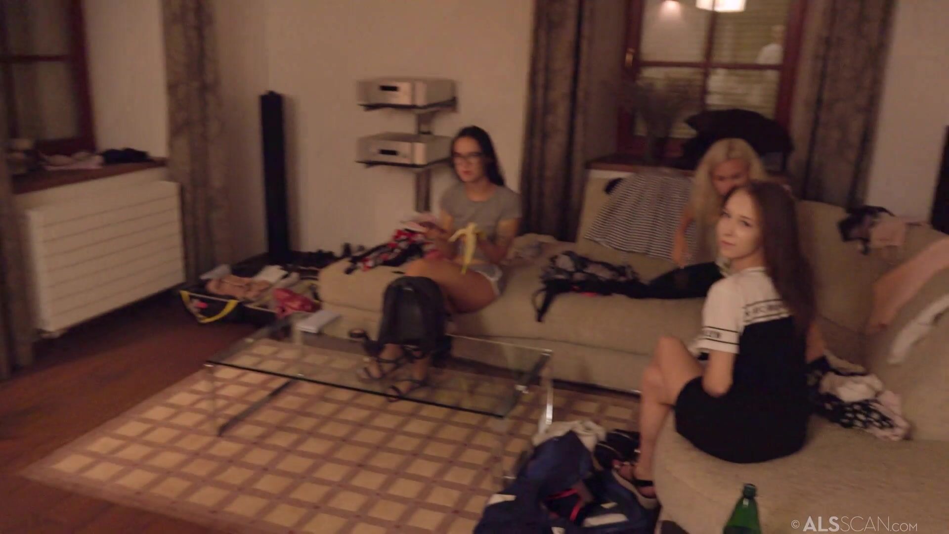 Худенькая брюнетка в коротких шортиках позировала перед камерой и постепенно раздевалась, пока на помощь к ней не пришла более опытная беленькая модель. Крошка показала россиянке, как надо исполнять приказы фотографов. Обе модели разделись догола и показали не только сиськи и попки, но и розовые пилотки.