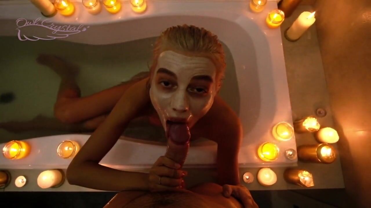 Цыпочка расслабляется в ванне и сосет любовнику
