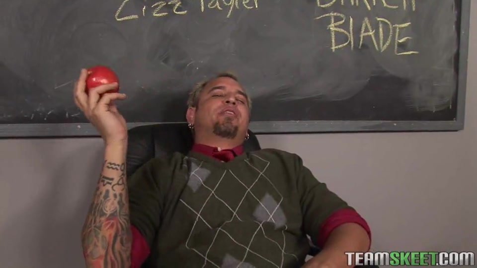 Завершился последний урок в этом году и дерзкий учитель пожелал всем счастливого Нового Года. Одна из учениц решила подарить ему подарок, но мужик откровенно побрезговал им, но сообщил, что поцелуй будет неплохим подарком. Девушка и сама тащилась от него, потому нащупав его член, принялась его отсасывать. Вылизав ее киску, они занялись превосходным активным сексом. В конечном итоге он ярко облил ее спермой.