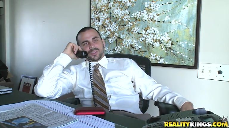 Молодой галантный мужчина ждал появления своего босса и вдруг на его телефон пришли фотографии обнаженной начальницы. Парень не удержался и пошел в туалет подрочить. Симпатичная грудастая блондинка, которая приходилась ему начальницей не смогла застать его на месте, потому решила проверить в туалете. Там не было занято, и она увидела его большой член. Не удержавшись, блонда принялась жадно его отсасывать. Далее подчиненный вылизал ее сочную киску, и ребята занялись шикарнейшим и очень возбуждающим сексом. В итоге он с радостью накормил ее своей спермой.