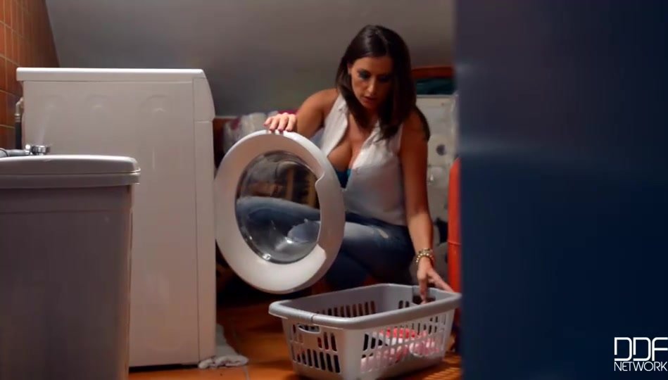 Великолепная брюнетка пыталась постирать свое белье и никак не могла справиться с машинкой. Делать было нечего, потому она пришла к своему соседу. Тот с радостью согласился помочь и, закинув на стирку, пришел к ней. Слово за слово и парочка уже ласкала друг друга. Грудастая красотка умело надрочила ножками его член, после чего он с удовольствием вылизал ее сочную киску. После они занялись привлекательным сексом, и он кончил. Оплата за стирку была более чем удачной.