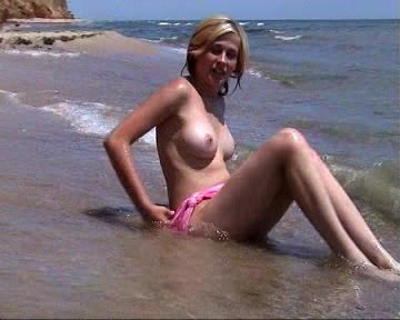 Раскованная блондинка позирует в воде