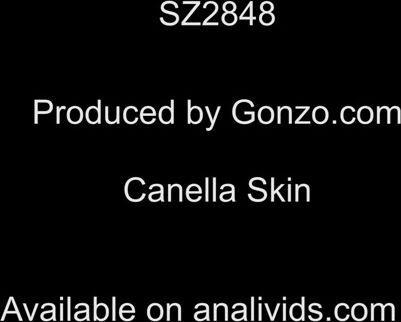 Силиконовая брюнетка в тату получает двойное проникновение