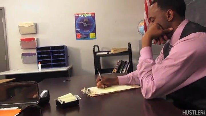 Милая девушка получила плохую оценку и преследовала учителя, чтобы ее исправить, ведь родители ей этого не простят. Вдруг она нащупала его член и стала гладить. Мужик возбудился, и с радостью сняв штаны, угостил своей большой черной балубой. Хуй едва вмещался в ее небольшой ротик, но все же минет, дал свои плоди и ребята занялись прекрасным сексом. После нескольких прекрасных поз студентка получила сперму на лицо и зачет по предмету.