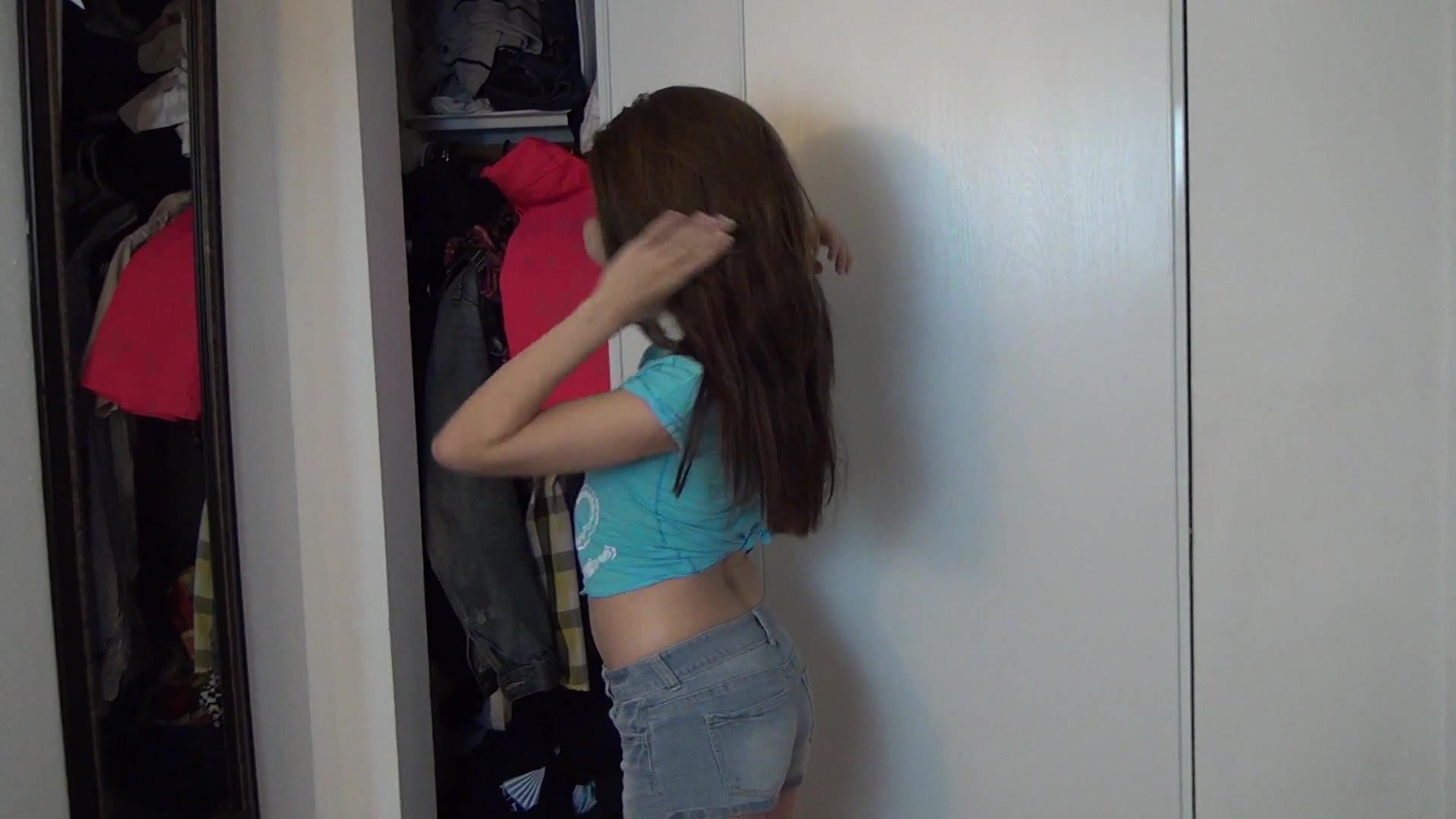 Симпатичная девушка шла на свидание и не знала, чтобы поинтереснее надеть. Девушка попросила своего ускоглазого соседа посмотреть на ее наряды. Брюнетка хотела увидеть его реакцию, ведь лучшее зеркало это глаза мужчины. Парень смотрел на ее наряды и не удержавшись принялся к ней приставать. Девушка оказалась не против разрядки и принялась отсасывать его член. После они занялись великолепным сексом.