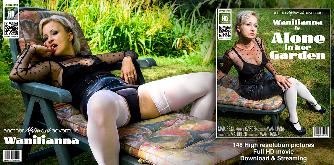 Старая сучка в белых чулках удобно устроилась на лежаке на улице и устроила эротическое представление. Потаскушка постепенно сняла лишнюю одежду и сразу начала мастурбировать бритую вагину. Шлюшка в возрасте баловала себя пальчиками без остановки, пока в итоге не заработала бурный и долгожданный оргазм.